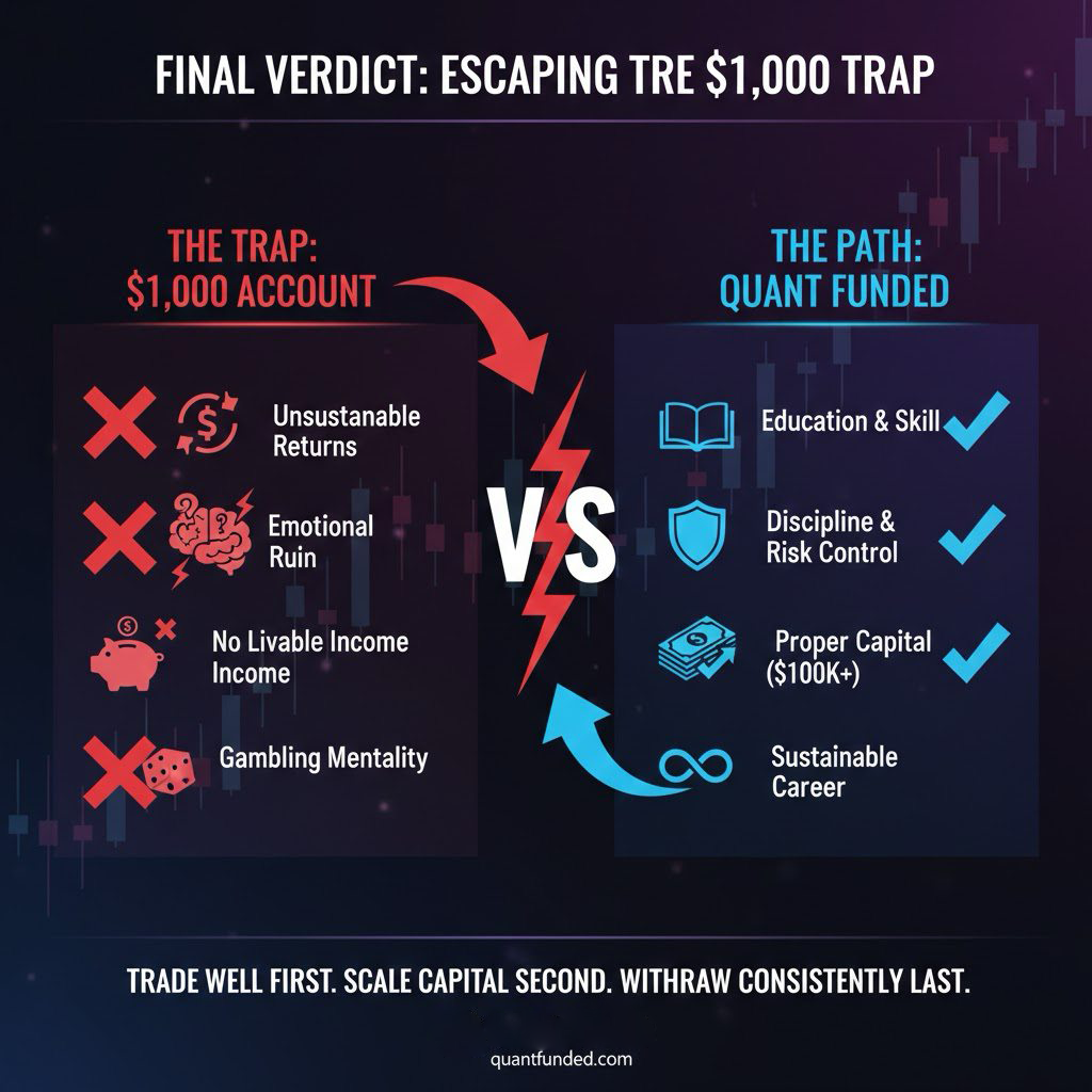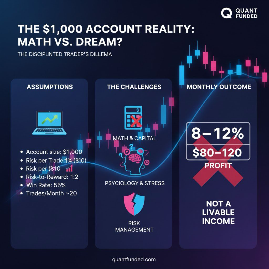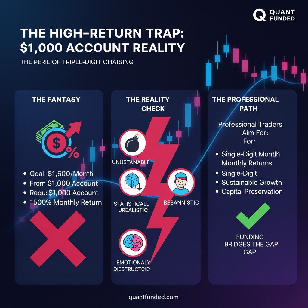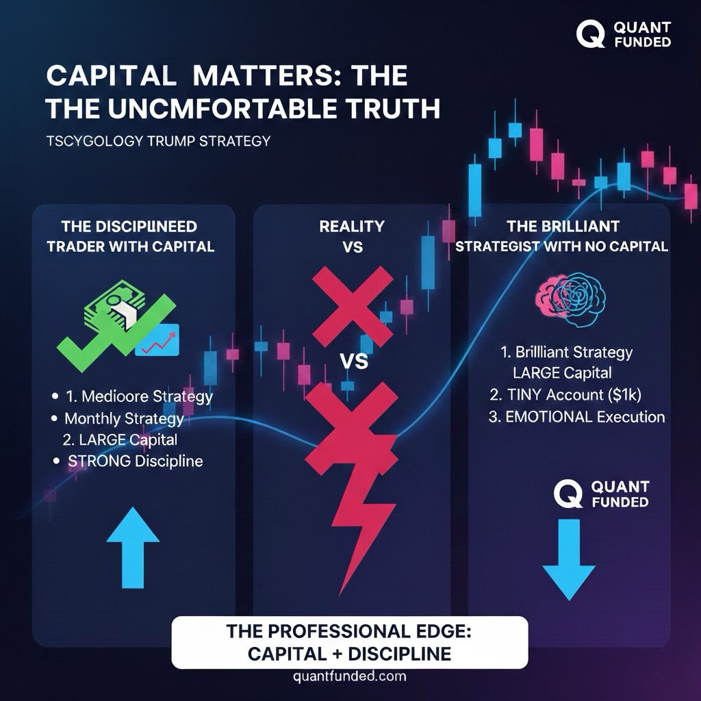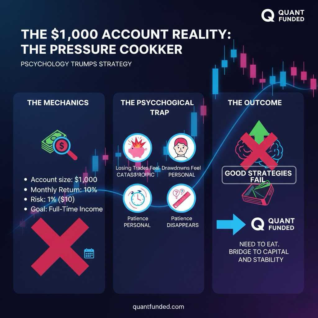 In this article, we’ll break down the real numbers, the psychological pressure, and the structural disadvantages of trading small capital—and explain why professional prop trading models like Quant Funded exist in the first place.