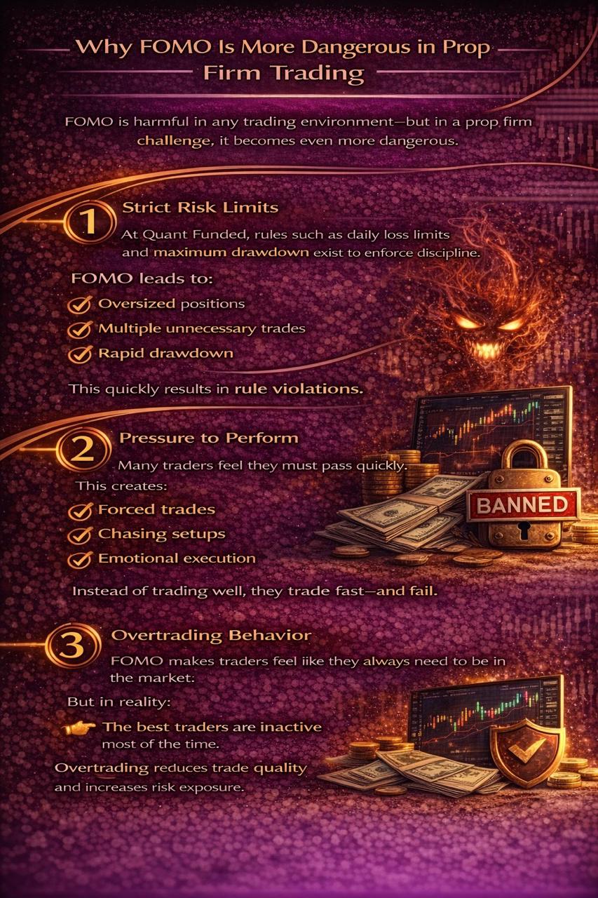 FOMO is harmful in any trading environment—but in a prop firm challenge, it becomes even more dangerous.