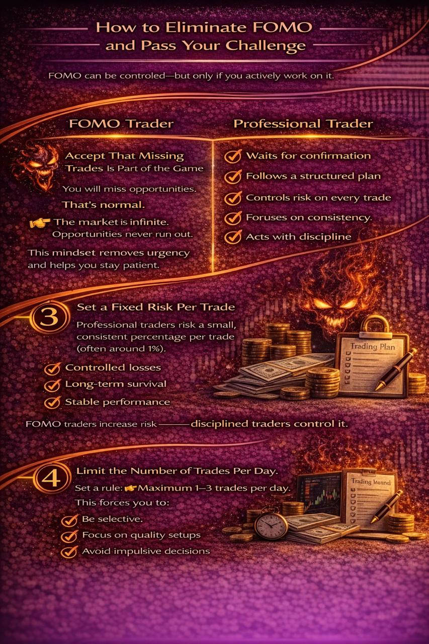 Passing a prop firm challenge is not just about having a profitable strategy—it’s about controlling your emotions under pressure. One of the biggest psychological traps traders fall into is FOMO (Fear of Missing Out).