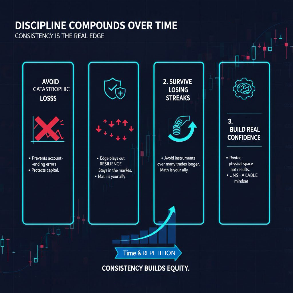 In a prop firm structure, discipline is not optional — it is the foundation that allows traders to protect capital and operate within strict risk parameters.