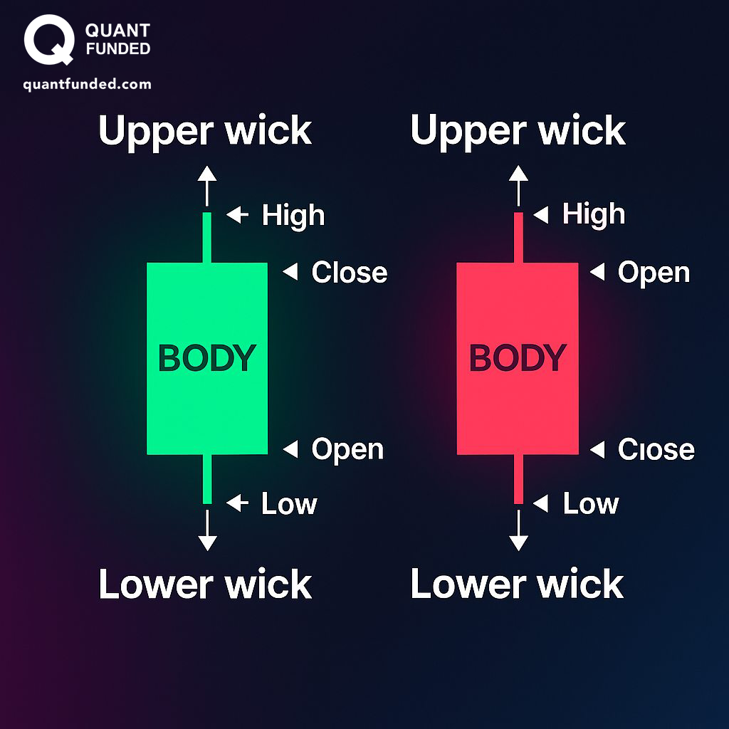 For Quant Funded traders using structured risk management, candlesticks act as a confirmation tool—validating entry triggers, invalidation points, and market direction.