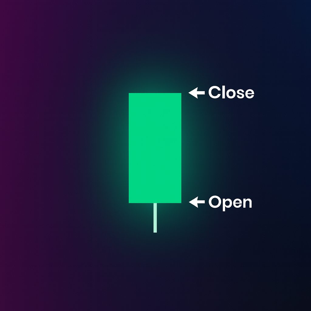 A bullish candle (usually green) indicates that price closed higher than it opened.